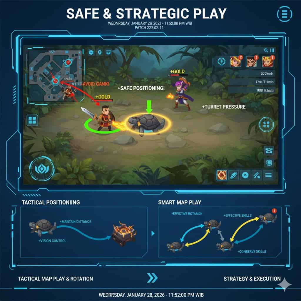 Bermain aman Mobile Legend adalah strategi penting agar hero tetap hidup, resource tetap terjaga, dan tim dapat memanfaatkan objektif secara maksimal. Strategi ini fokus pada positioning, rotasi map, pemilihan battle spell, dan pengambilan keputusan yang minim risiko.
